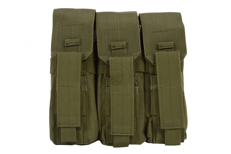 - Три кармана для трех магазинов АК с регулируемыми клапанами.- Три кармана для трех пистолетных магазинов с регулируемыми клапанами.- система крепления MOLLE