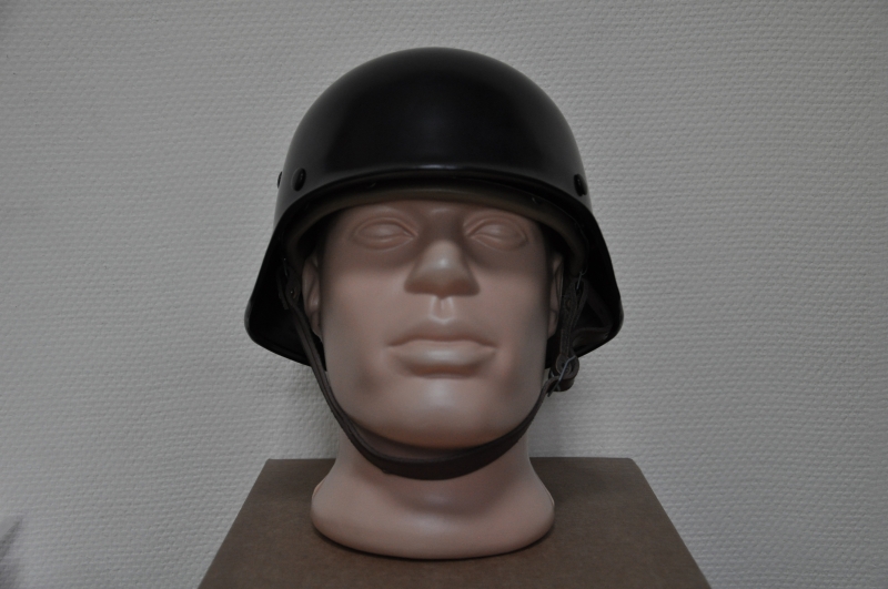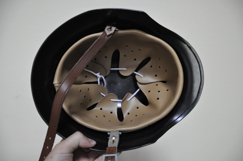 Использовался в войсках Вермахта. Сталь 2мм, штампованый. Регулируемый размер 59-61. Кожаный парашют и ремешок.