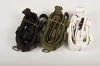 На ремне предусмотрена пряжка для экстренного сброса оружия. Передний карабин пришит малошумным способом.